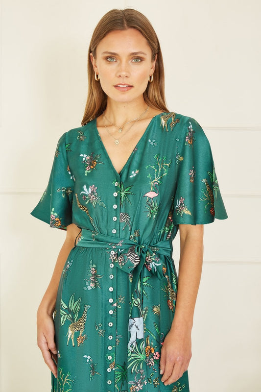 Holiday OfferYumi Green Floral Pleated Wrap Dress