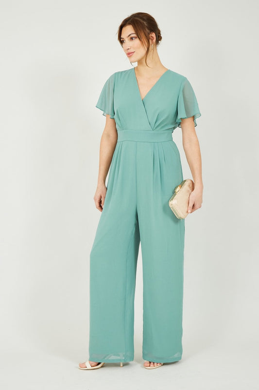 Yumi – Grüner Jumpsuit mit goldener Schnalle und Rüschendetail