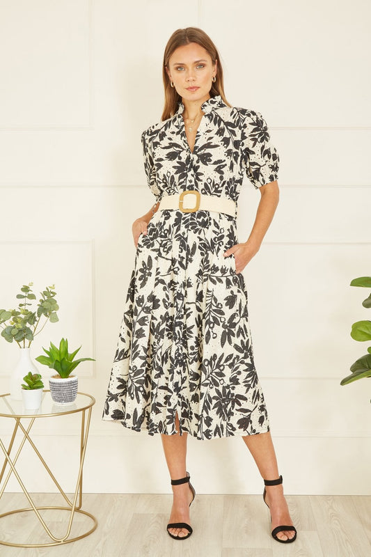 Yumi – Schwarzes, langärmliges Midikleid mit Blumenstickerei