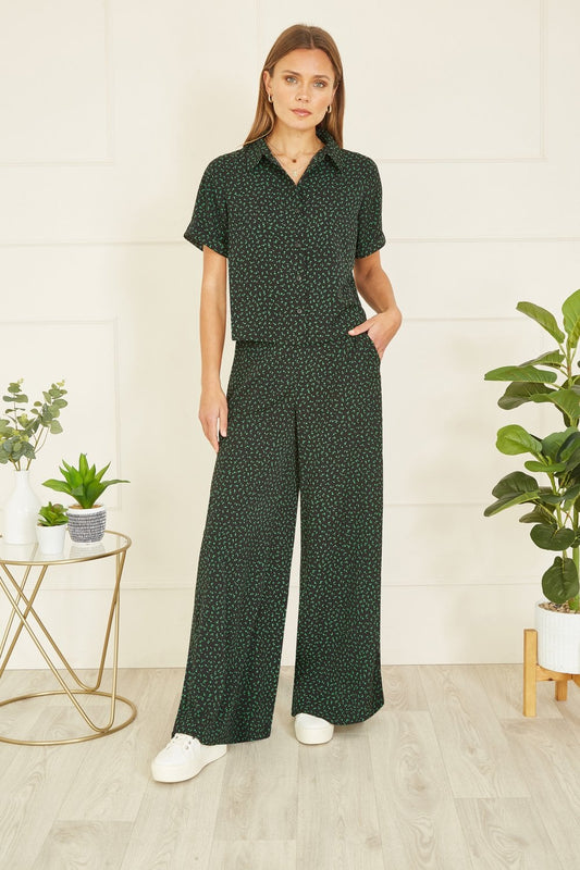 Yumi – Grünes Hemd mit Rüschen und hohem Kragen