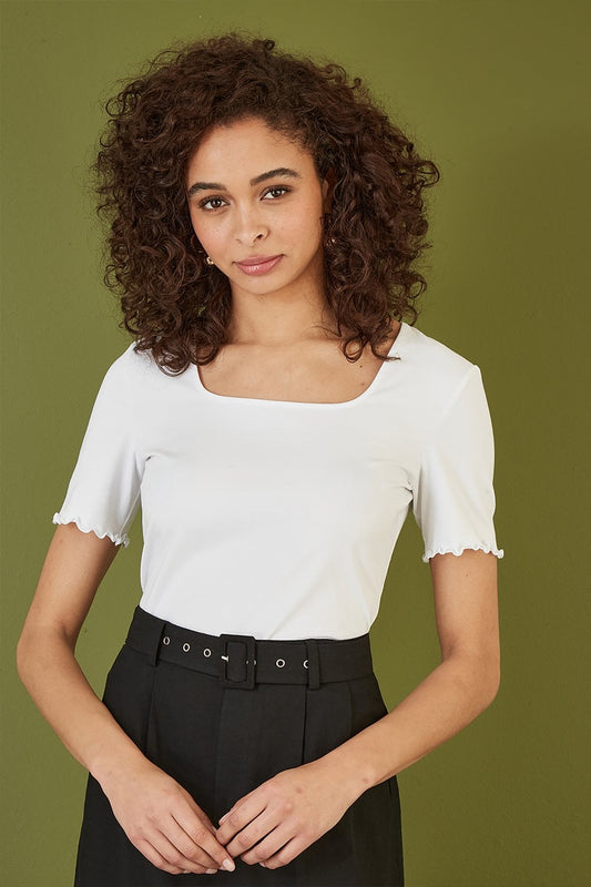 Yumi, langärmliges Oberteil aus Stretch-Baumwolljersey in Weiß