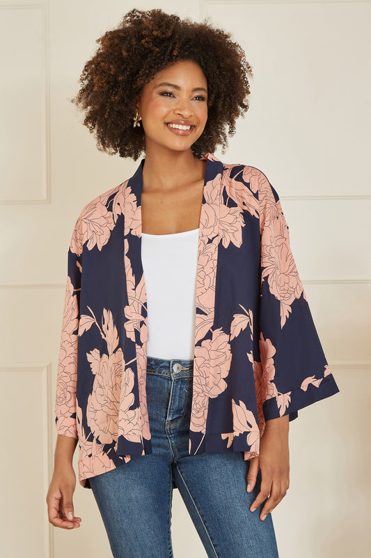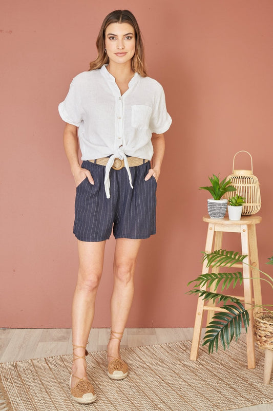 Yumi – Marineblaues Strickoberteil mit Blockstreifen und Knopfdetails