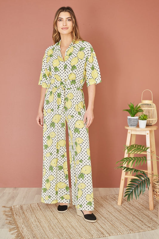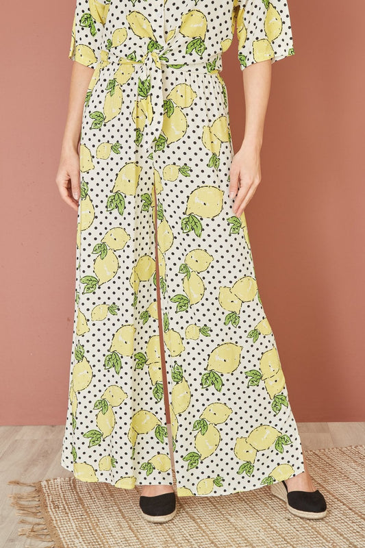 Yumi – Locker geschnittene Hose mit schwarzem Farn-Print