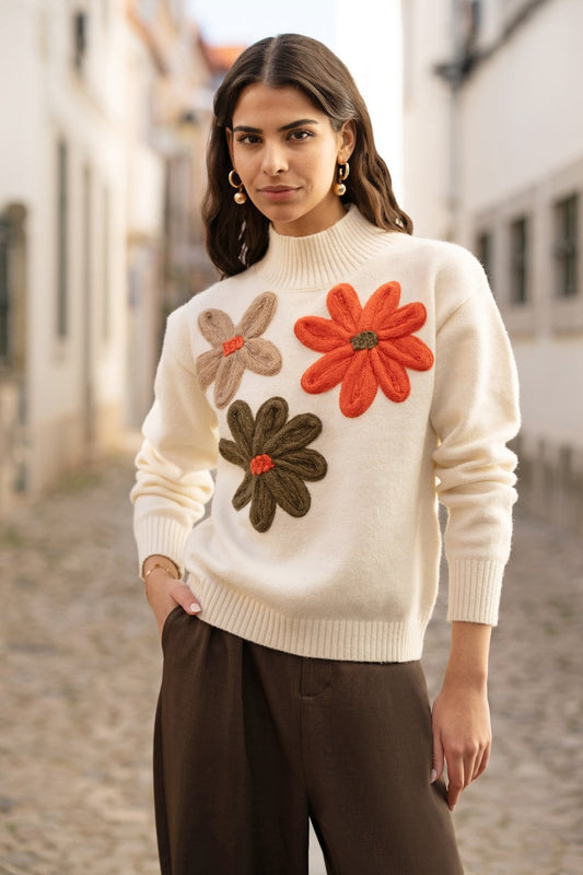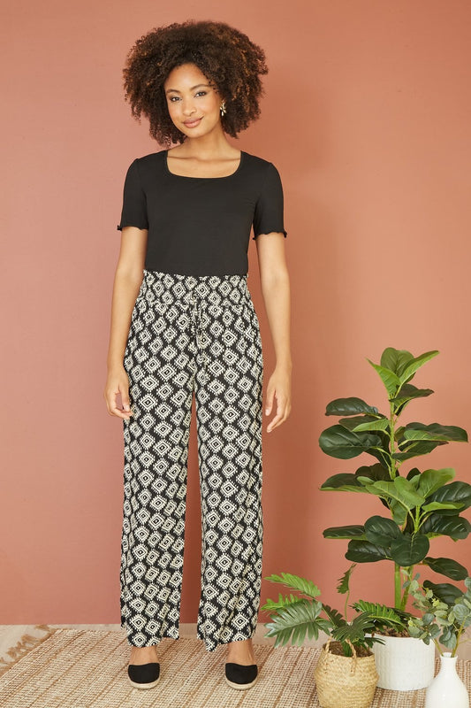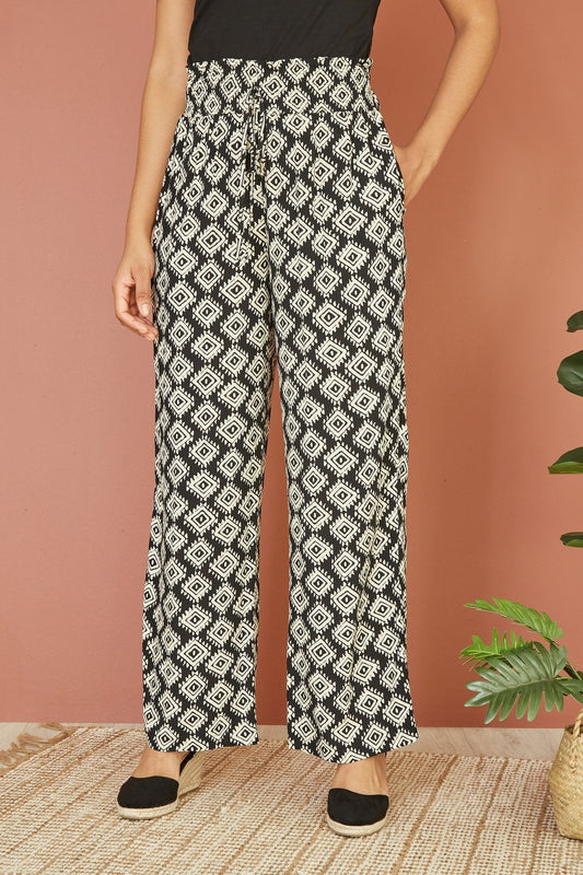 Yumi – Locker geschnittene Hose mit schwarzem Ikat-Print