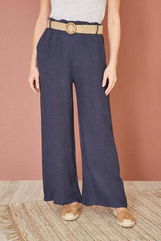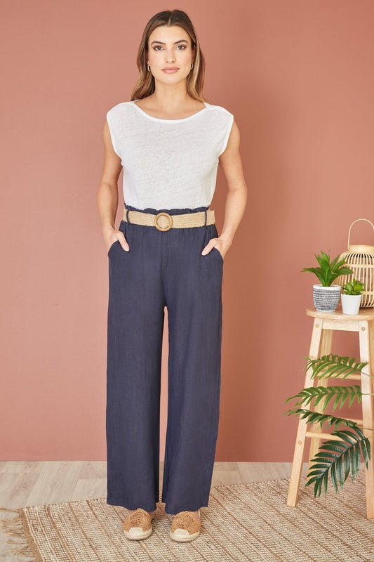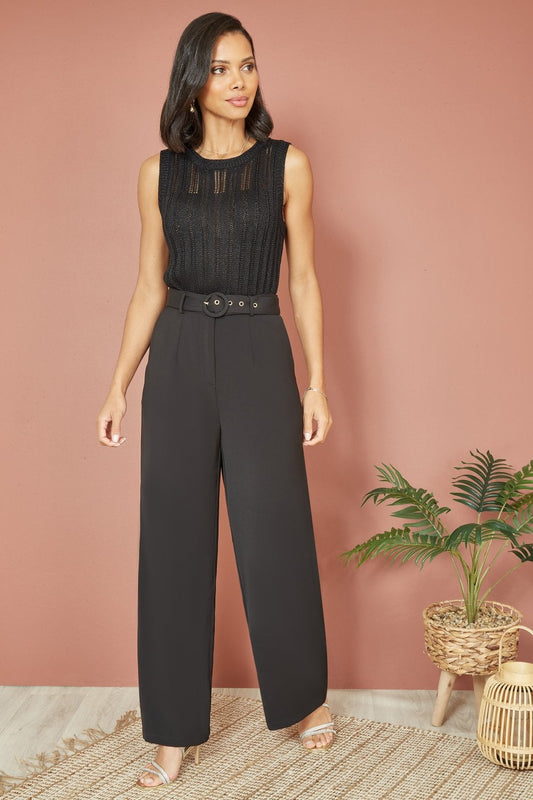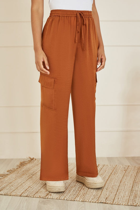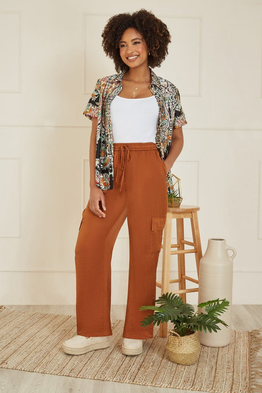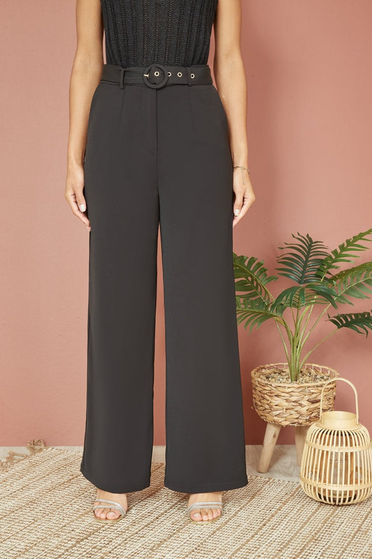 Yumi – Braune Hose mit weitem Bein und Schnallendetail vorne