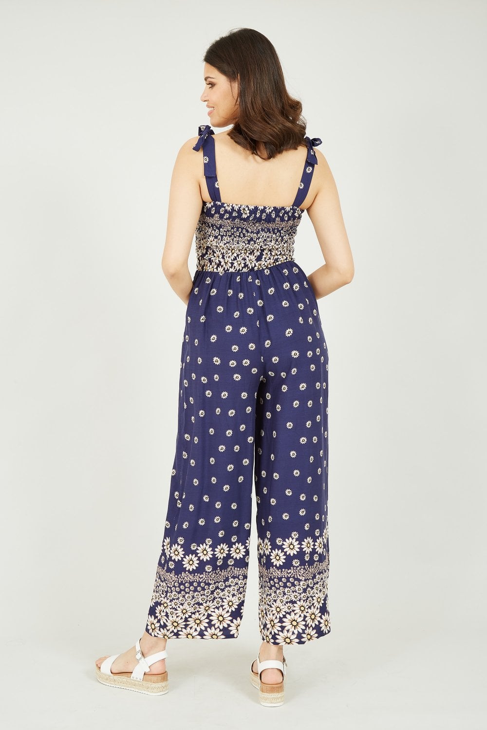 Yumi – Marineblauer Pailletten-Jumpsuit mit langen Ärmeln