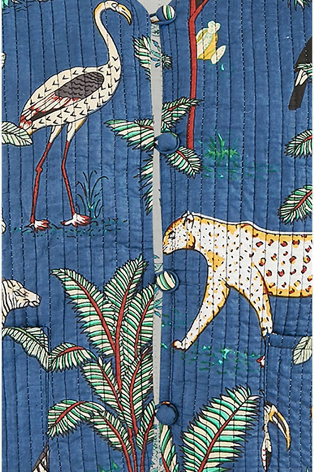 Yumi – Kurze, wendbare Steppjacke aus Baumwolle mit Animalprint in Blau