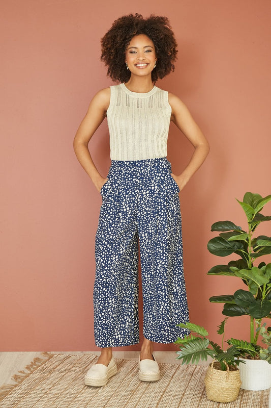 Pantalon coupe décontractée à imprimé géométrique Yumi Blue