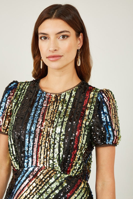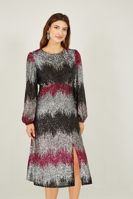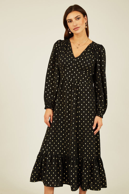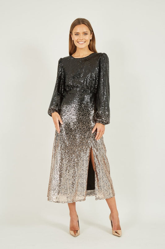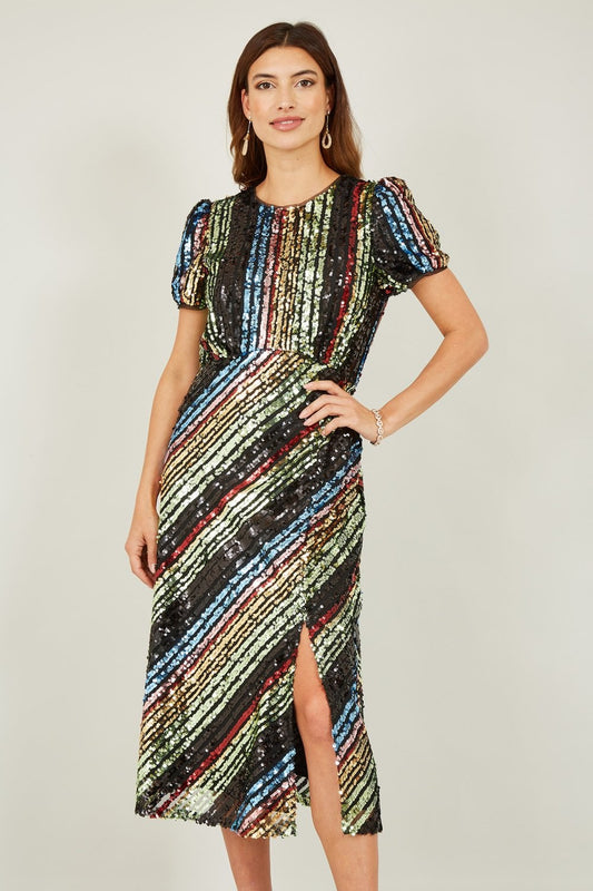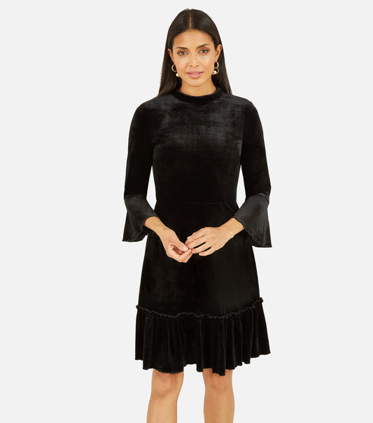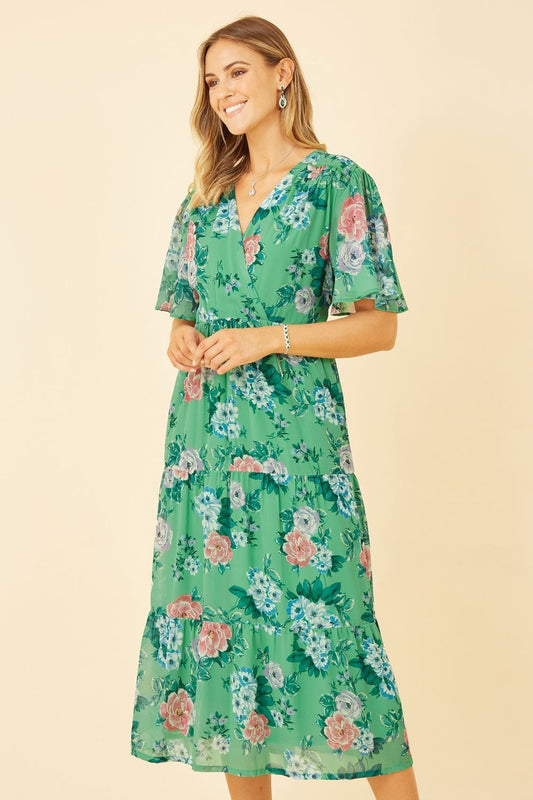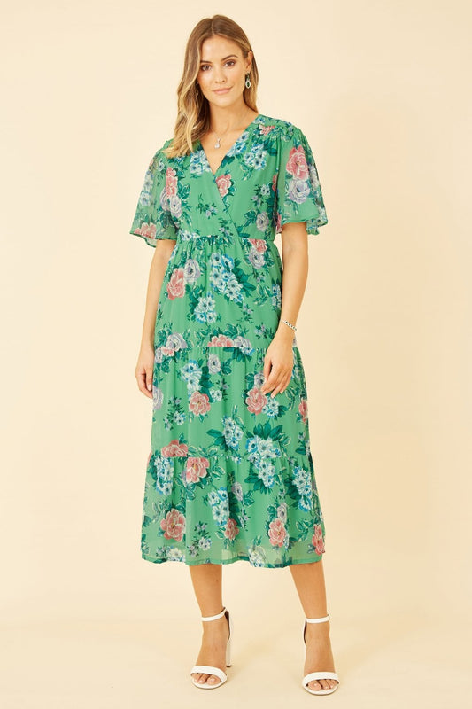 Yumi Green Fitted Midi Dress With Flute Sleeves