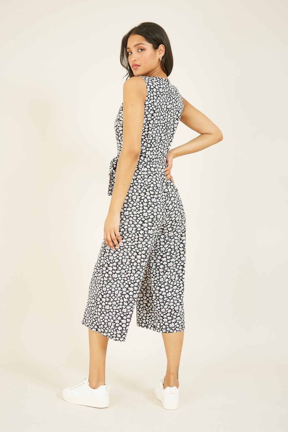 PromotionYumi Black Foil Print Velvet Jumpsuit