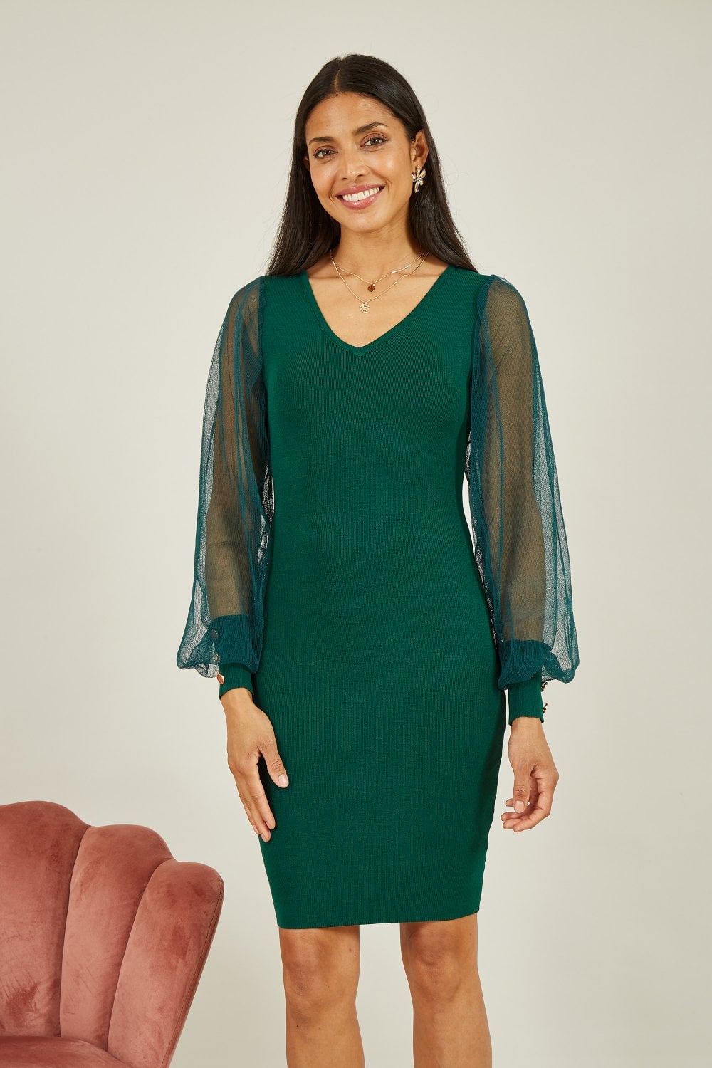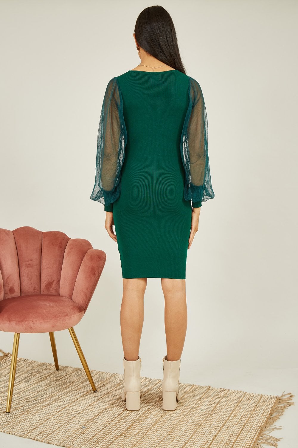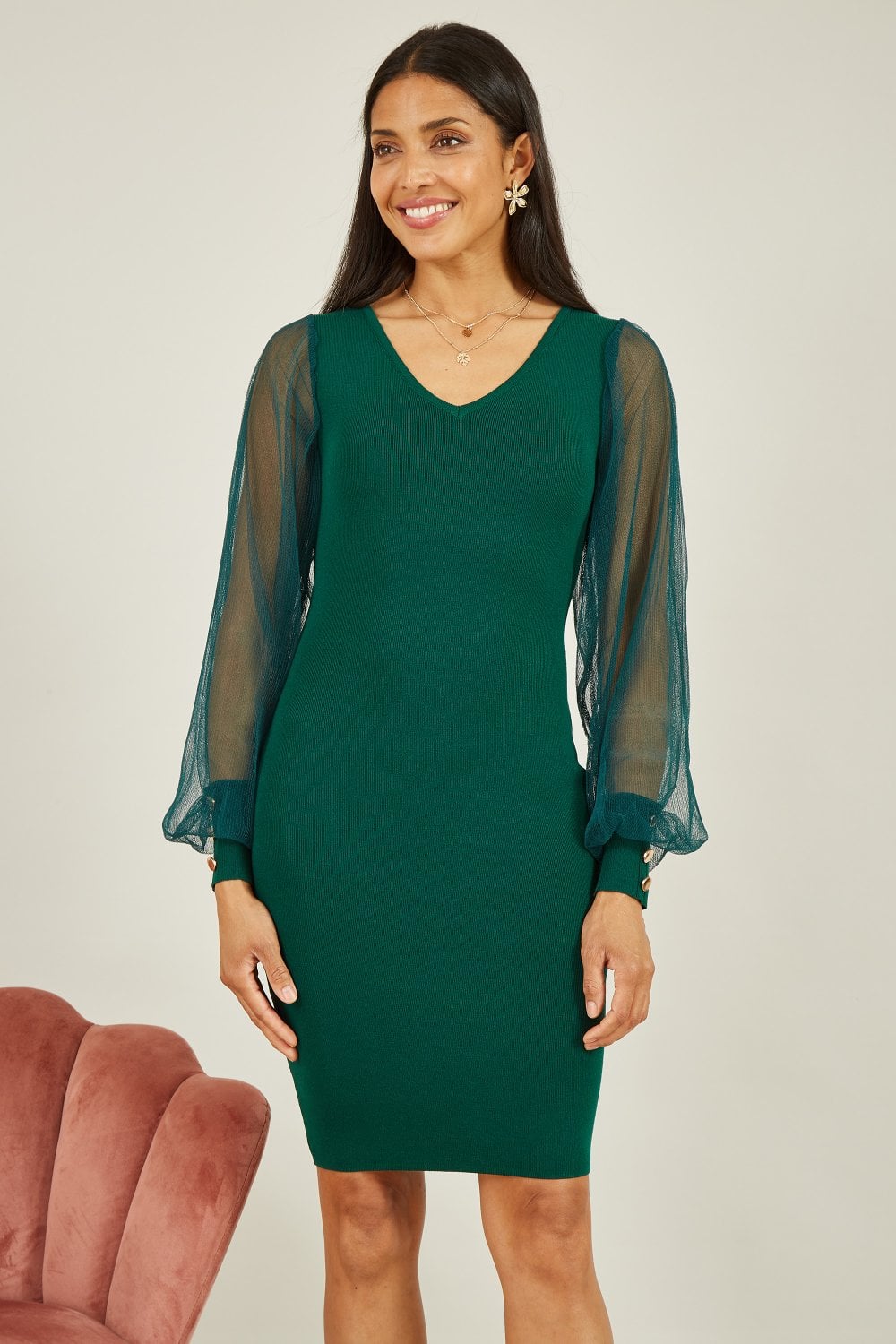 Robe mi-longue ajustée à boutons Yumi Green Shimmer