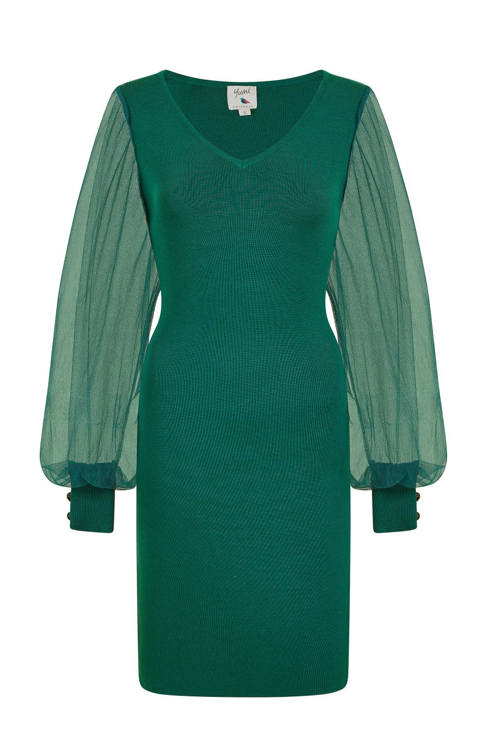 Robe pull décontractée en tricot à détails de perles vertes Yumi