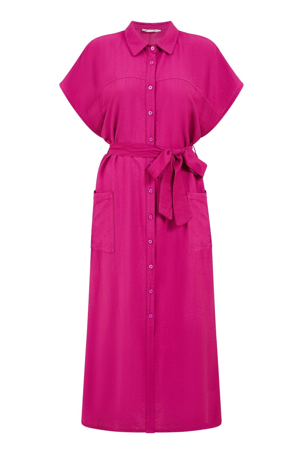 Robe chemise mi-longue froncée à imprimé feuilles tropicales Yumi Coral