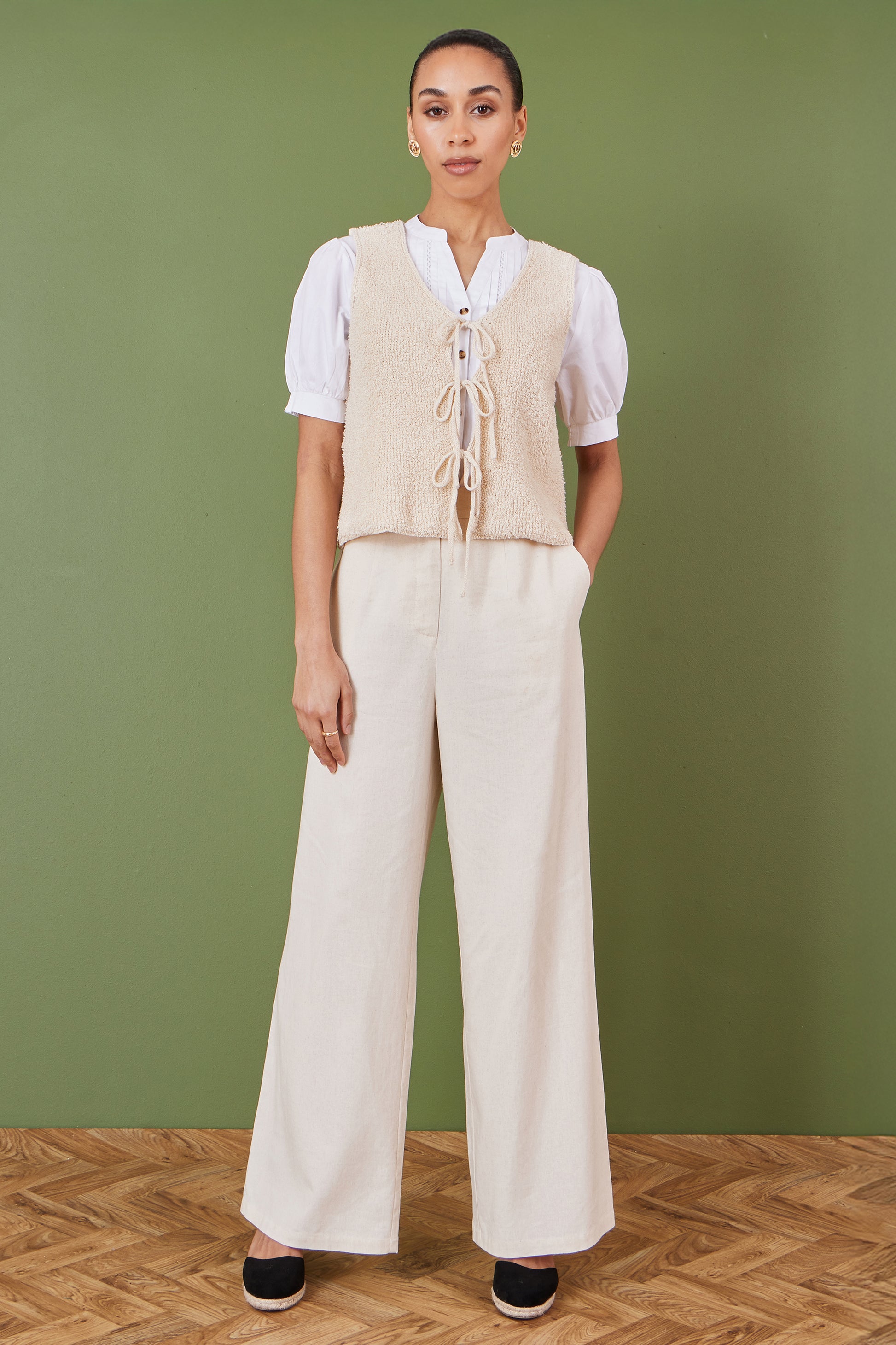 Yumi Beige Knitted Tie Detail Knitted Waistcoat